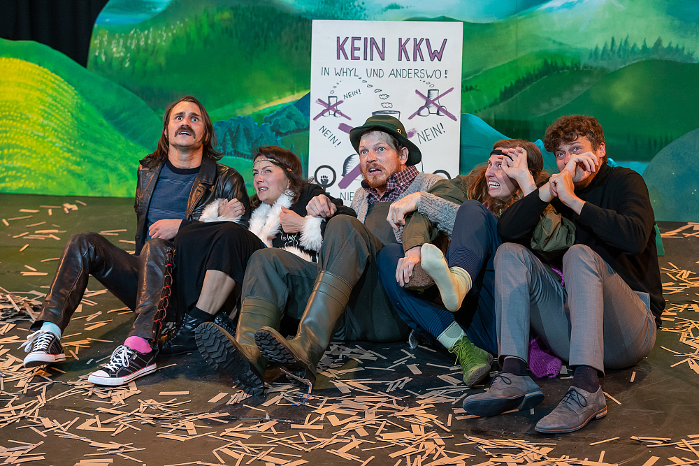 In einer Mischung aus Fiktion und Dokumentation zeichnet das Stück in Zeitsprüngen einen Bogen von Beginn der Umweltbewegung in den 70ern bis zur heutigen „last generation“. Im Zentrum des Geschehens steht Celine, eine Elsässerin, die die Proteste 50 Jahre zuvor als junges Mädchen erlebte und jetzt die alten Zeiten wieder lebendig werden lässt. Verbunden durch die gemeinsame Protestbewegung und die alemanische Sprache vereinen sich nicht nur Franzosen, Schweizer und Deutsche, sondern auch unterschiedlichste gesellschaftliche Gruppierungen.