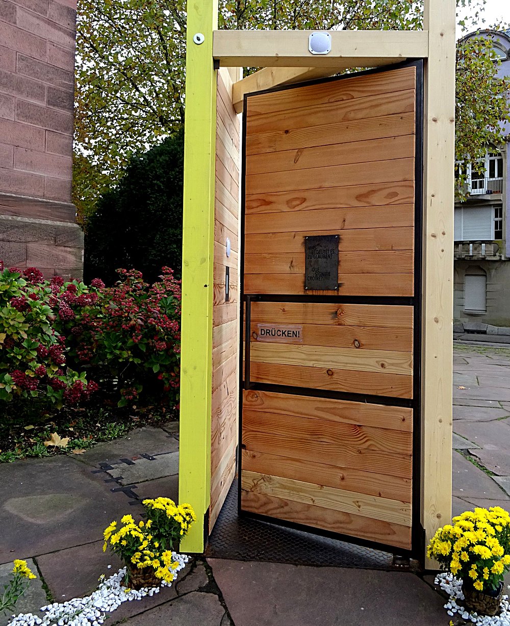 Neu ist diesem Jahr eine Installation der katholischen Seelsorgeeinheit auf dem Vorplatz vor St. Peter und Paul. Die Installation einer überdimensionalen Tür lädt Besucher zum „Durchgehen“ ein: Die „Tür“ stellt auf ihrer Vorderseite die derzeit besonders aktuelle Frage „Was bedeutet es zu glauben? | Que signifie croire?“. Wer hindurch geht, erhält eine kurze audiovisuelle Antwort in Form eines Zitats von Persönlichkeiten, die sich zu dieser Frage Gedanken gemacht haben: von Buddha über Paulus und Mohammed bis Karlheinz Deschner. Das Durchgehen und die verschiedenen Antworten aus der Zeitgeschichte fordern die Besucher heraus, sich über das „Glauben“ eigene Gedanken zu machen. Die Installation wurde von der Firma mediaville in Weil am Rhein in Kooperation mit der Seelsorgeeinheit An der Schutter im Auftrag der Erzdiözese Freiburg realisiert. Sie bleibt bis zum Ende der Chrysanthema aufstellt.