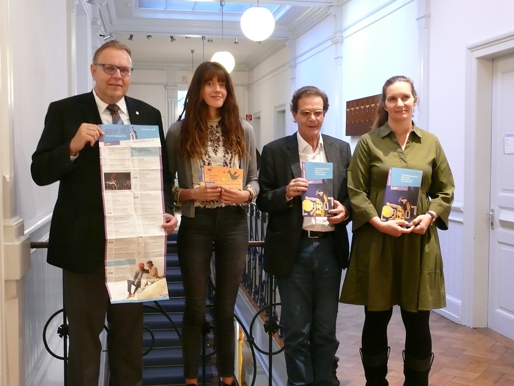 Gemeinsam mit dem Ersten Bürgermeister Guido Schöneboom stellt Kulturamtsleiter Gottfried Berger das neue vollständige Gesamtprogramm für die Spielzeit 2019/2020 vor. Das 80-seitige Heft beinhaltet neben den bereits im Frühjahr angekündigten Abo-Veranstaltungen im Bereich Theater und Konzerte auch Genres wie Musik- und Tanzshows, Kabarett, Kindertheater, Ballett und Kunst. Desweiteren finden die Leserinnen und Leser des neuen Spielzeit-Magazins Informationen zu geplanten Ausstellungen im Stadtmuseum Lahr sowie viel Interessantes aus der Lahrer Kulturszene.
