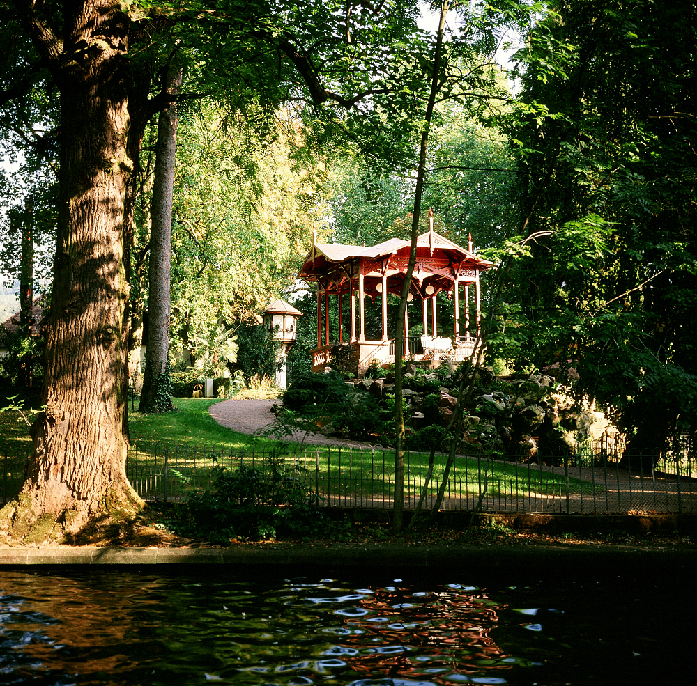 Das Bild zeigt einen Blick auf den chinesischen Pavillon im Stadtgarten.