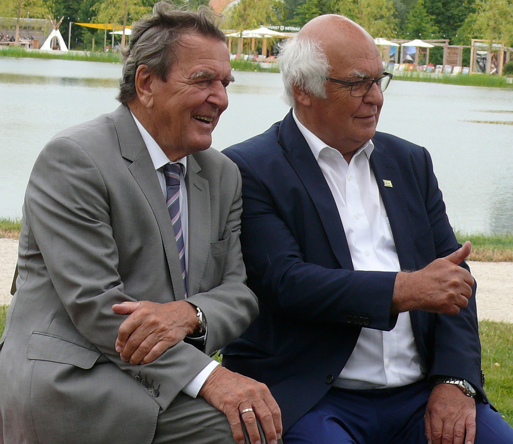 Das Unternehmen von Martin Herrenknecht „ist weltweit tätig, aber zugleich fest verankert in der Region. Die Internationalität des Unternehmens ist die eine Seite des Erfolgs, die andere Seite des Erfolgs ist Deine soziale Verantwortung“, betonte Altbundeskanzler Gerhard Schröder.