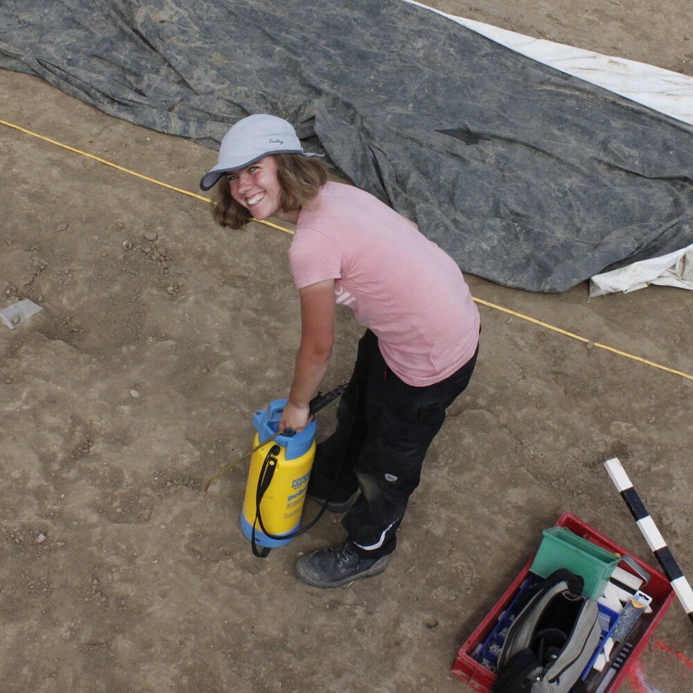 Die Archäologiestudentin Leonie Anders bei den Ausgrabungen in Rheinau-Diersheim.