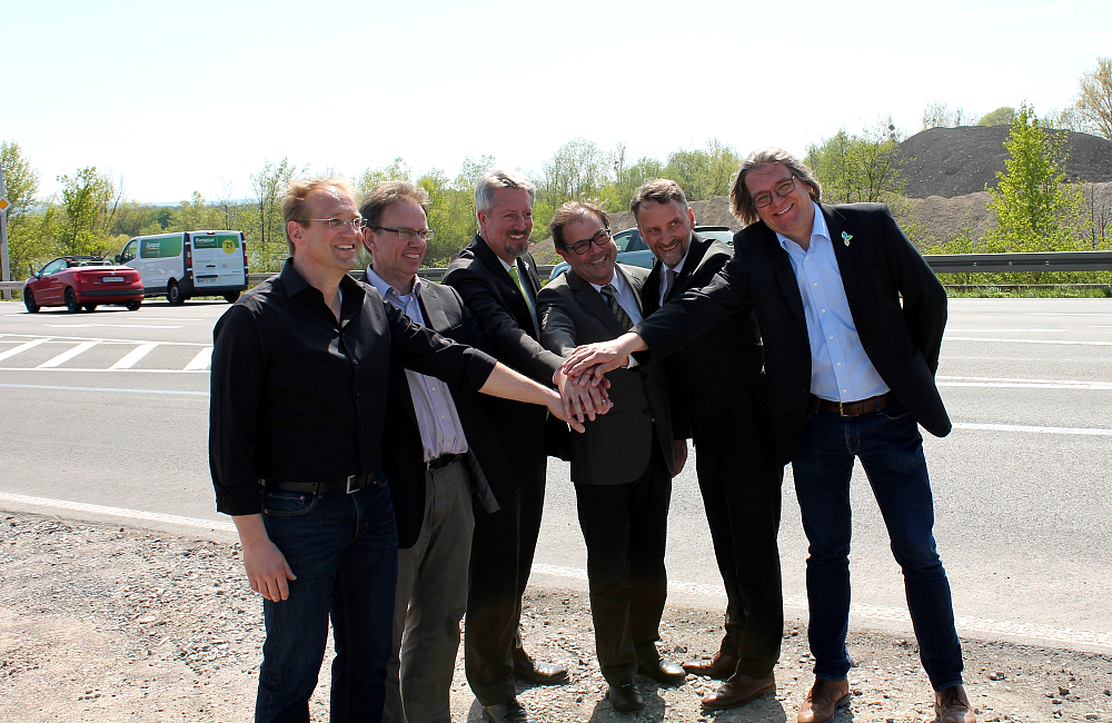 Heute haben sich die am Bau Beteiligten auf Einladung der Auftraggeber zur feierlichen Einweihung an der Anschlussstelle eingefunden.