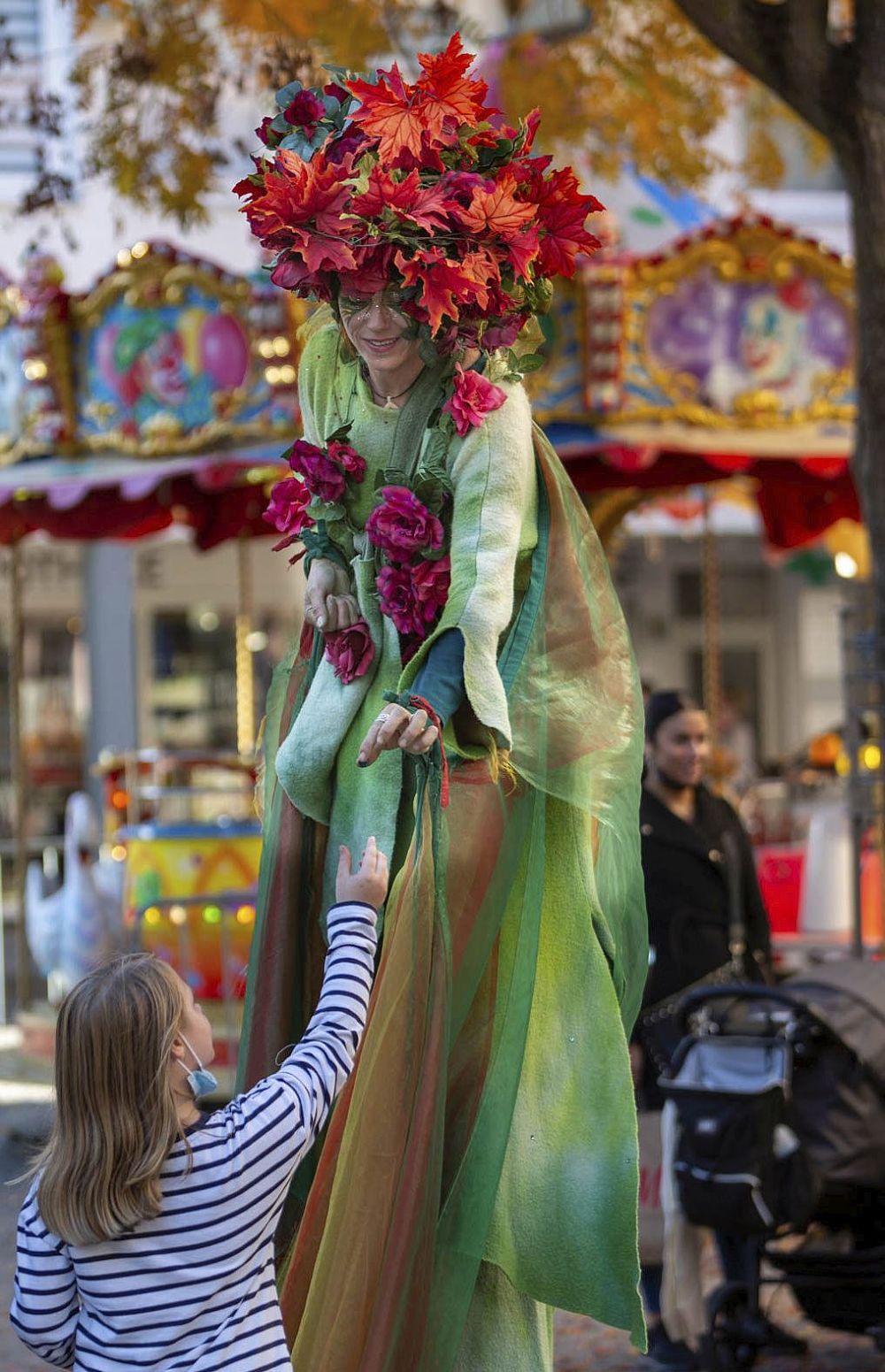 Stelzenläuferin auf dem Lahrer Wochenmarkt