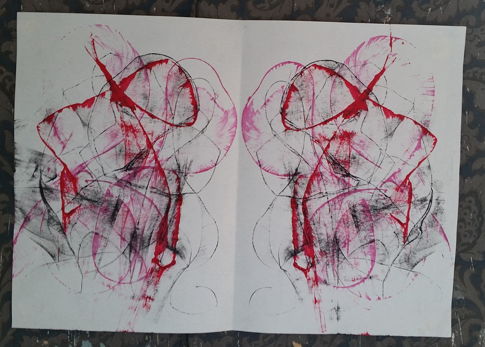 Ein Bild mit einem Fadenbild in rot und grau.