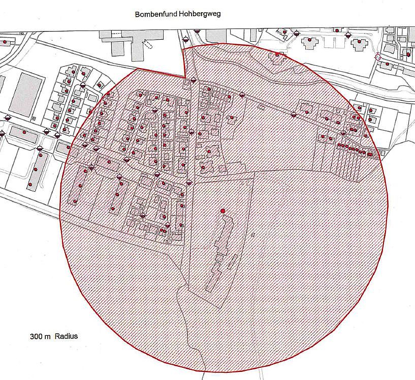 Eine 250 kg - Fliegerbombe ist am Mittwoch im Hohbergweg entschärft worden. Vor Ort waren Einsatzkräfte der Polizei, der Feuerwehr und des Kampfmittelbeseitigungsdienst. Nach der geglückten Entschärfung, für die im Radius von 300 Metern Anwohner und Gewerbetreibende evakuiert wurden, stand OB Dr. Müller der Presse Rede und Antwort.