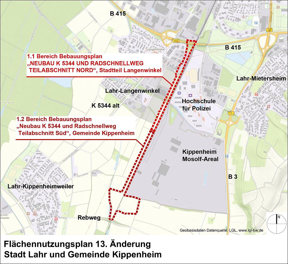 Bereich Bebauungsplan Neubau K 5344 und Radschnellweg