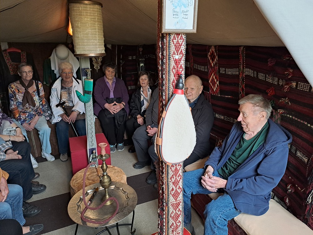 Die Gruppe aus dem Treffpunkt Stadtmühe erhielt in der Bibelerlebniswelt Schönbronn in einem Beduinenzelt eine Einführung in die Welt der Bibel, Foto: Dieter Vanselow