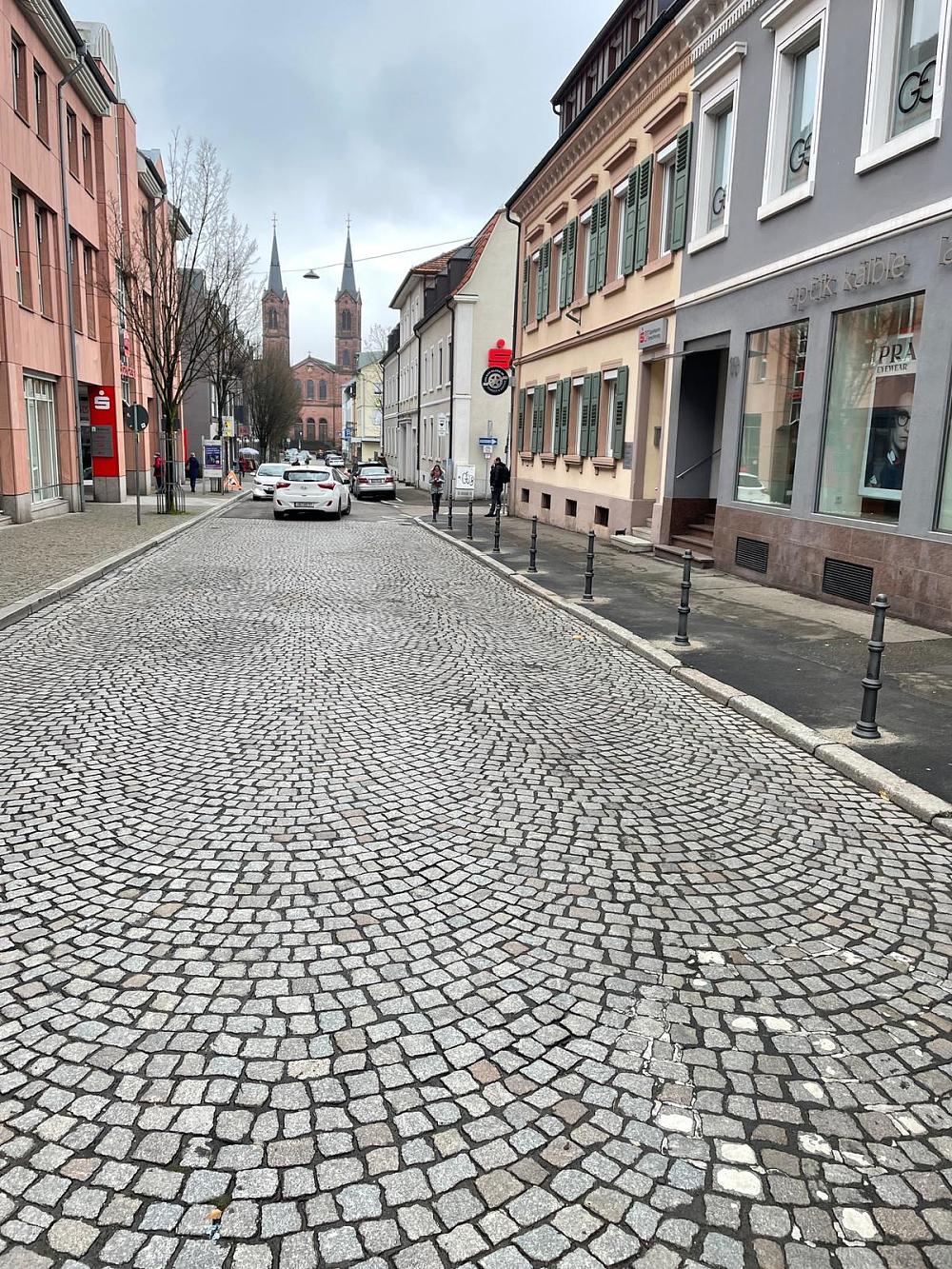 Wer regelmäßig in der Schillerstraße zu Fuß unterwegs ist, freut sich über die komfortabel nutzbaren und freien Gehwege, zumindest im oberen Bereich. Hier sichern zahlreiche Poller zwischen der Kaiserstraße und der Metzgerstraße den westlichen Gehweg, so dass er auf seiner vollen Breite nutzbar ist und nicht von parkenden Fahrzeugen eingeschränkt wird.