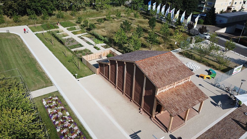 Das Foto zeigt das Streifenhaus in der Römeranlage auf dem Gelände der Landesgartenschau