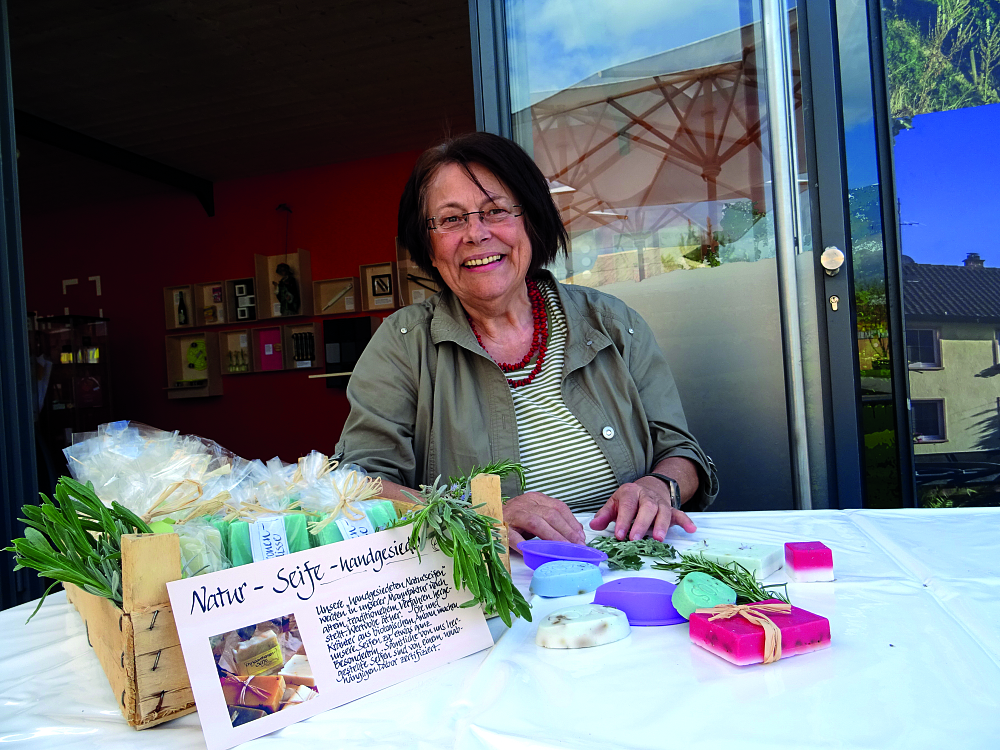 Produkte aus Monika Fischers Seifenmanufaktur „Naturstückchen“ sind auf vielen Handwerksmärkten duftender Anziehungsmagnet. Die Stadt Lahr führt seit vielen Jahren in ihrem Souvenir-Artikelsortiment die handgesiedete Gärtnerseife sowie saisonal die Chrysanthemenseife von Monika Fischer.