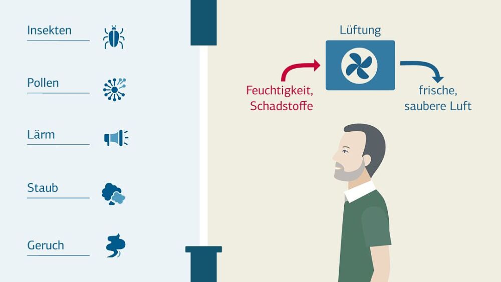 Noch eine Bemerkung zum Mythos „Zwangsbelüftung”: Man kann die Fenster natürlich jederzeit öffnen – man muss es aber mit der automatischen Wohnraumbelüftung nicht mehr.