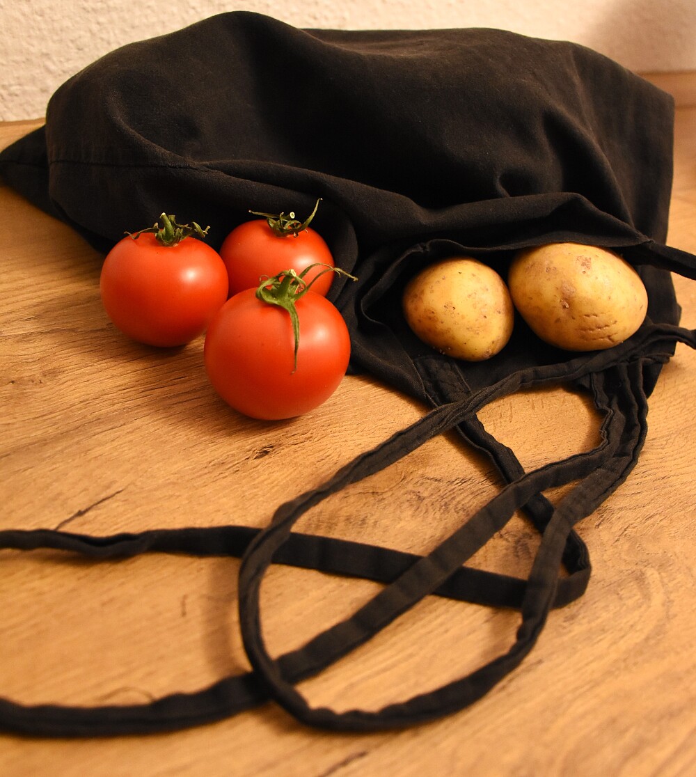 Tomaten und Kartoffeln kommen in eine Stofftasche