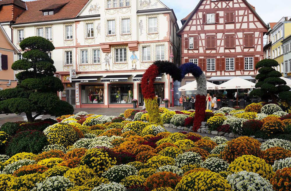 Themenbeet des Europa-Parks auf der Lahrer Chrysanthema 2022 zur deutsch-französischen Freundschaft