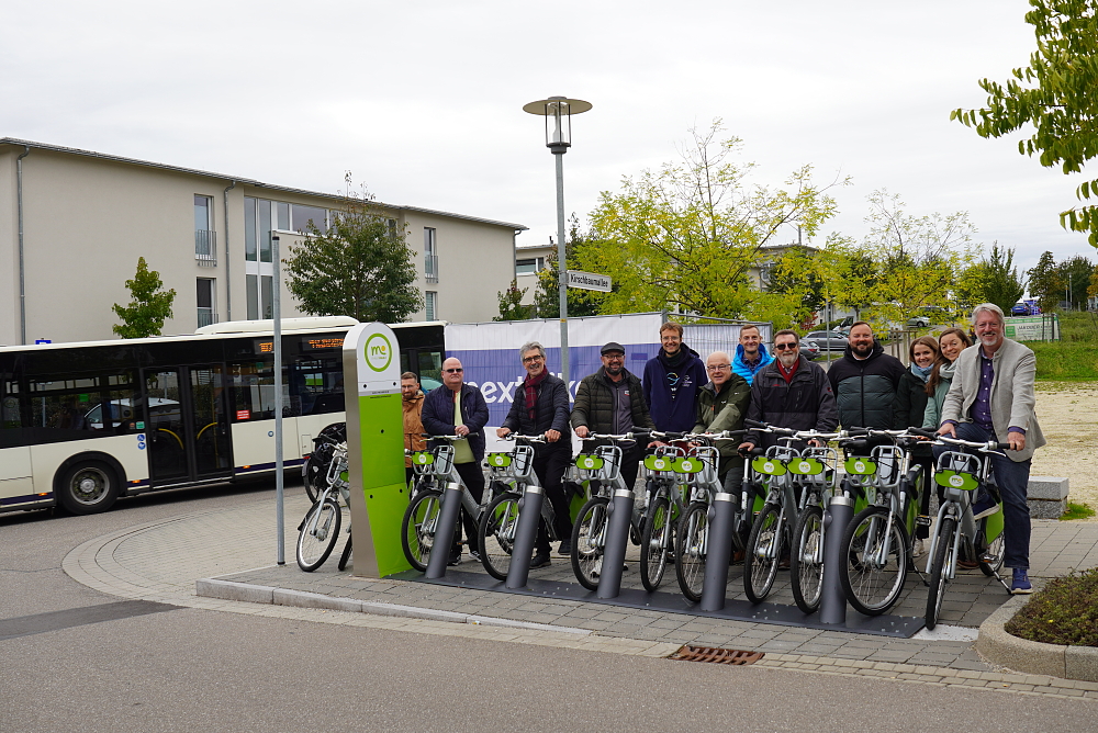 Die Stadt Lahr hat eine weitere Mobilitätsstation in Betrieb genommen: Im Neubaugebiet Hosenmatten II haben Bürgermeister Tilman Petters und Martin Stehr, Leiter der Abteilung Mobilität und Verkehr, die Station „Kirschbaumplatz“ offiziell eröffnet. Vertreterinnen und Vertreter der Fraktionen im Lahrer Gemeinderat sowie der Unternehmen, die an der Realisierung beteiligt waren, haben ebenfalls teilgenommen. Die Mobilitätsanbieter haben bei der Eröffnung das Mietradsystem und das E-Carsharing-Fahrzeug präsentiert.