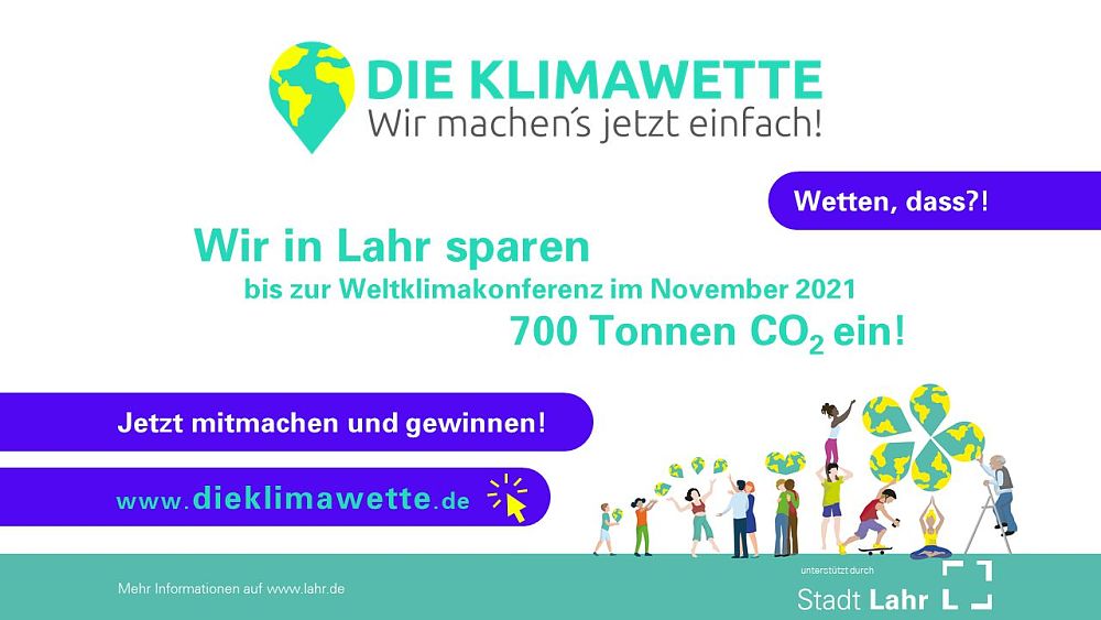 Die Stadt Lahr unterstützt diese wichtige Aktion zum Klimaschutz und nahm die Herausforderung an, 1,5 Prozent der Lahrer Bevölkerung zu mehr Klimaschutz zu motivieren. Die Wette gilt: bis zum 1. November knapp 700 Lahrerinnen und Lahrer zu finden, die durch persönliche Maßnahmen oder eine Spende für Klimaschutzprojekte jeweils eine Tonne CO2 einsparen. Mitte Oktober ist das anvisierte Ziel aber noch in weiter Ferne: Im Städteranking liegt die Stadt Lahr mit bisher knapp 30 eingesparten Tonnen CO2 im oberen Mittelfeld. „Das reicht aber bei Weitem noch nicht aus, um die Wette zu gewinnen. In Lahr ist noch so viel Potenzial und jede zusätzlich eingesparte Tonne ist ein Mehrgewinn für den Klimaschutz“, resümiert Klimaschutzmanagerin Madeleine Krol und ruft zum Mitmachen auf.