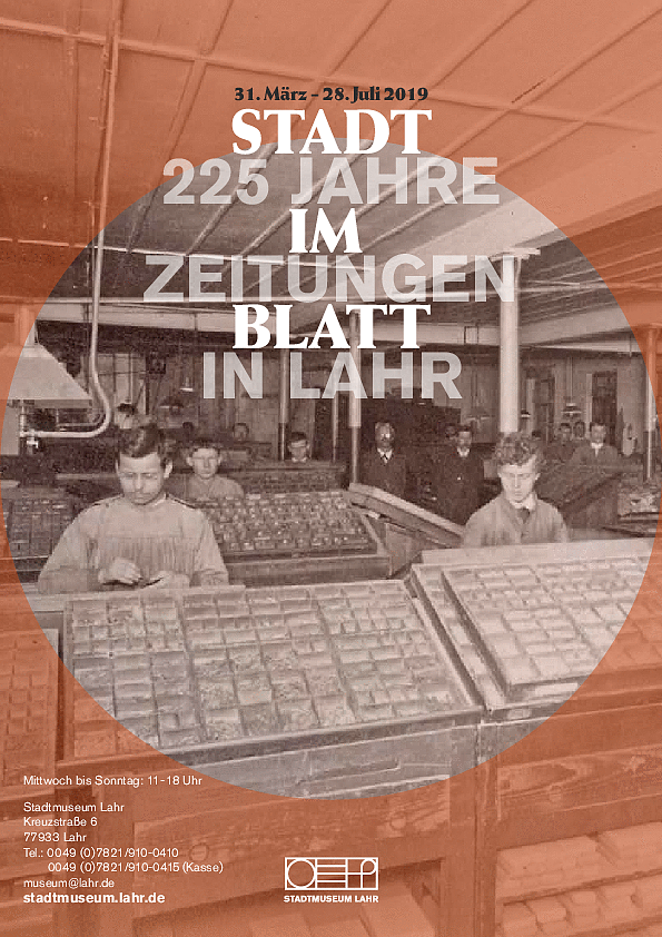 Am Sonntag, 31. März 2019, ist es soweit: Als erste große Sonderausstellung mit zahlreichen Begleitveranstaltungen widmet sich das Stadtmuseum der Zeitungsgeschichte in Lahr. Die Sonderausstellung ist eine Retrospektive auf 225 Jahre lokale Zeitungsgeschichte.