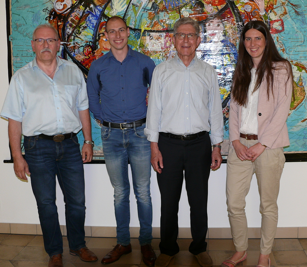 Es stehen von links Reiner Michel und Christopher Büttner von der Stadtkapelle Lahr, dann Oberbürgermeister Dr. Wolfgang G. Müller und rechts Katharina Bohnert von der Lahrer Zeitung.