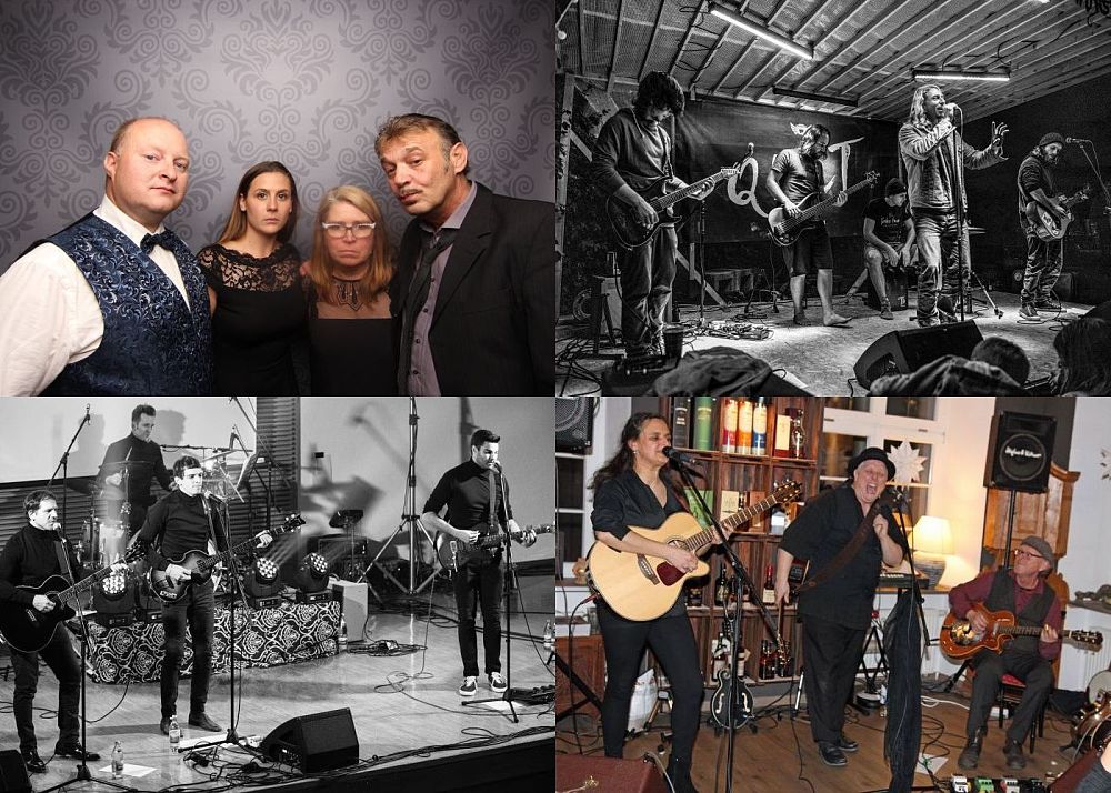 Bandfotos von SaxPäck (links oben), Qult (rechts oben), Mean Musterds (links unten) und Me and the Scotsman (rechts unten).
