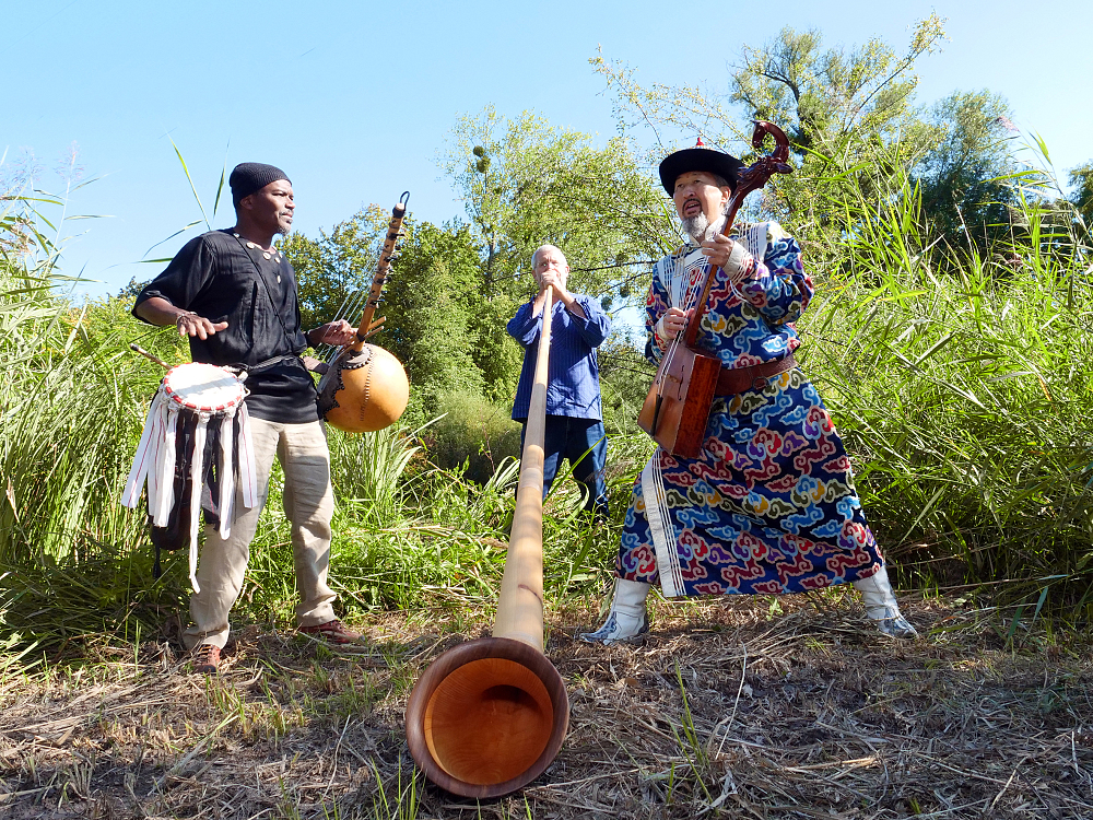 Am Samstag, 26. Juni, gibt das Weltmusiktrio „FraPapEpi“ um 17 Uhr und um 19 Uhr sinnliche Musik dreier Kontinente zum Besten. Das Trio besteht aus drei Musikern, die von unterschiedlichen Kontinenten stammen: Der deutsche Multiinstrumentalist und Grenzgänger Franz Schüssele musiziert international als Solist mit Alphorn, archaischen Naturton- und historischen Instrumenten, wie zum Beispiel Lure, Carnyx, Serpent oder Trumscheit (Tromba Marina). Das Stimmwunder Enkhjargal Dandarvaanchig stammt aus der Mongolei. Er liebt es, mit seinem Spiel auf der Morin hoor (Pferdekopfgeige) seine traditionellen Wurzeln mit moderner, westlich geprägter Musik und Improvisation zu verschmelzen. Pape Dieye aus Dakar (Senegal) widmet sich dem Spiel der Bugarabus, einem Ensemble aus drei Trommeln, und der traditionellen Musik Senegals.
