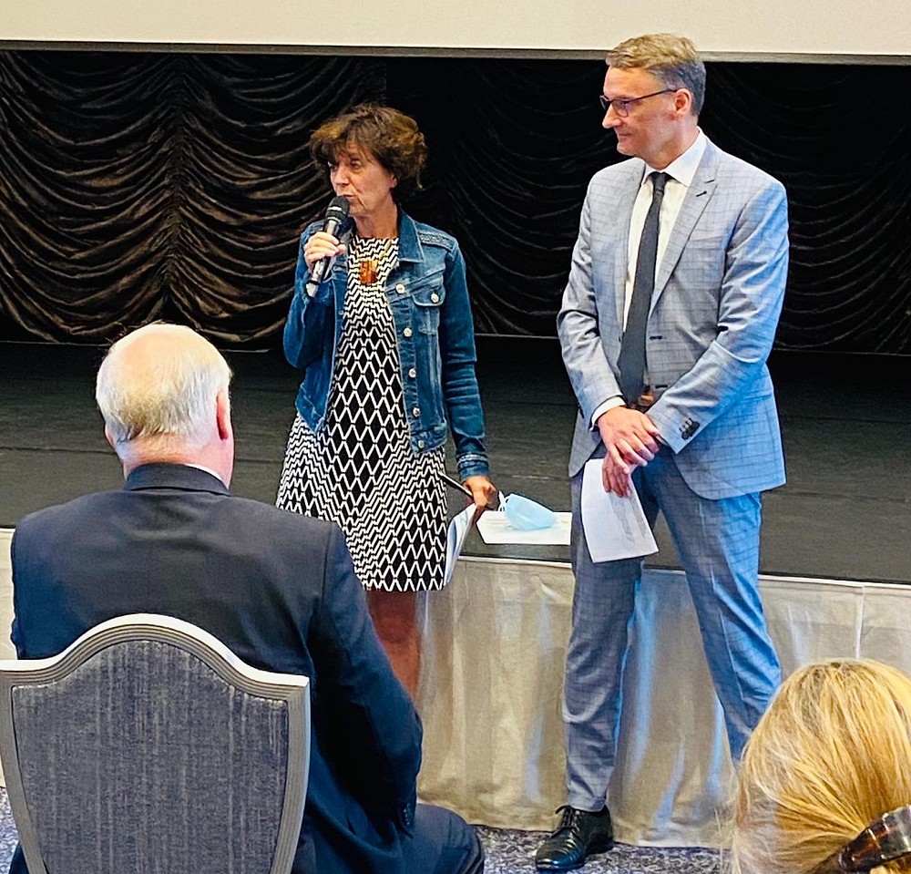 Bei der deutsch-französischen Verkehrskonferenz in Rust stellte der Lahrer Oberbürgermeister Markus Ibert gemeinsam mit seiner Gerstheimer Kollegin Laurence Muller-Bronn das grenzüberschreitende Projekt „Vis-à-Vis-Umweltbrücke“ für Linienbusse, Radfahrer und Fußgänger vor. Dabei stießen sie auf ein großes Interesse der anwesenden Vertreter aus Politik und Wirtschaft.