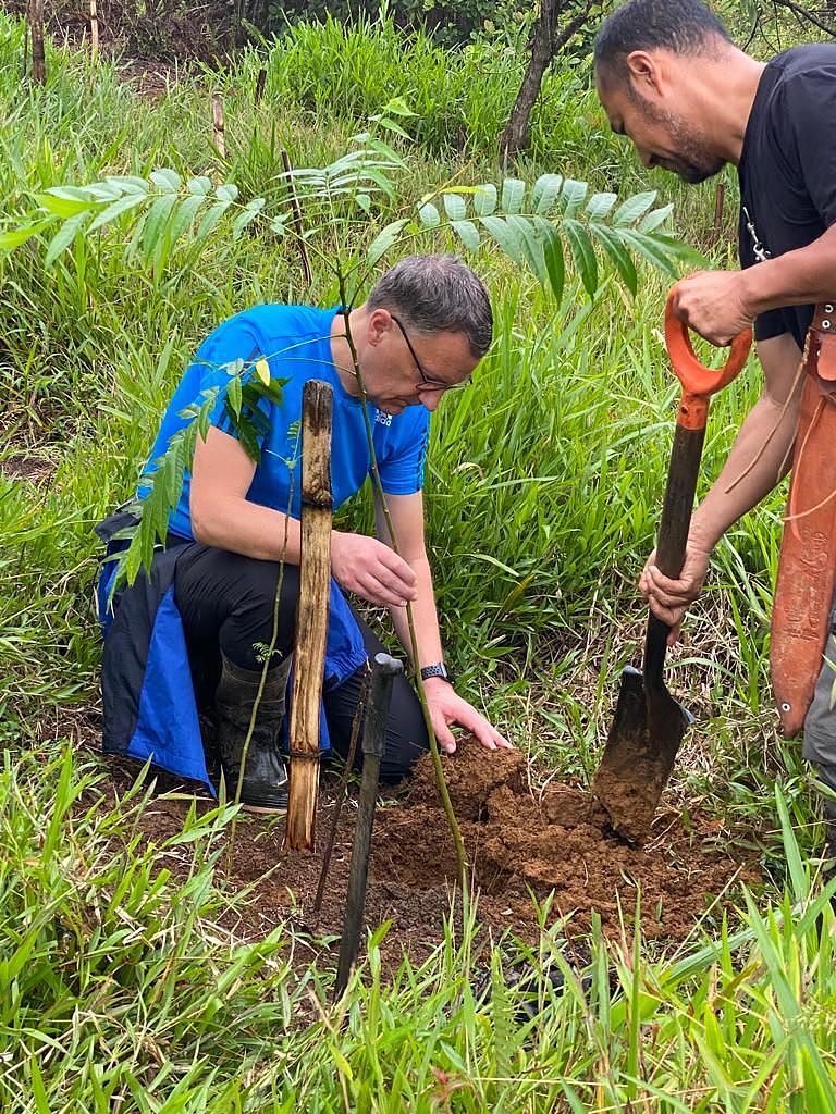 Lahrs Oberbürgermeister packt bei einer Aufforstungsaktion im Nationalpark Braulio Carillo mit an.